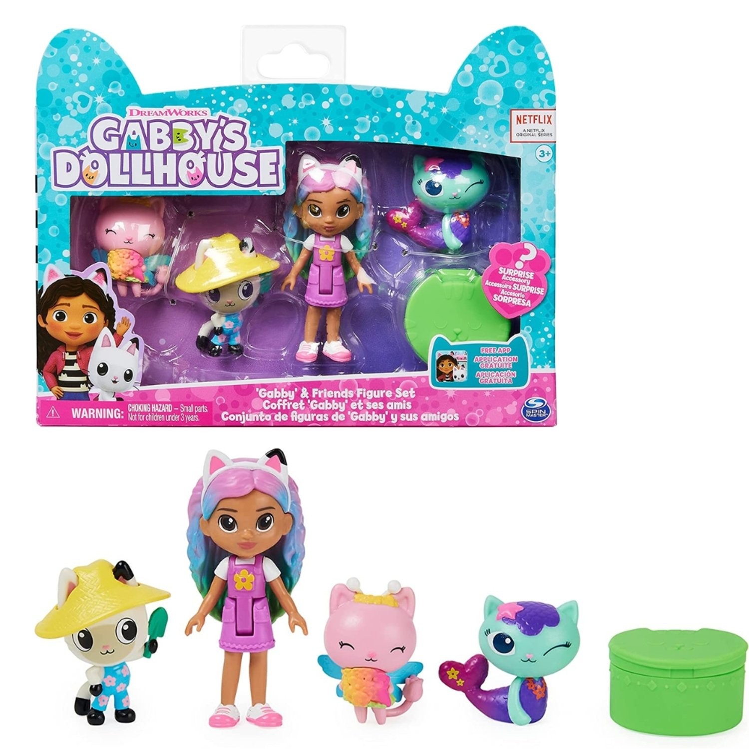 4 FIGURAS DE JUGUETE: ¡Con una exclusiva muñeca Rainbow Gabby, con cabello azul y morado, y sus adorables amigos gatitos, Pandy Paws, MerCat y Kitty Fairy, en este juego de figuras Cat-Tastic!